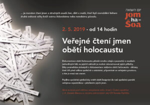 Veřejné čtení jmen obětí holocaustu – Jom ha-šoa 2019 Letošní již 7. ročník Veřejného čtení jmen obětí holocaustu – Jom ha-šoa se uskuteční
