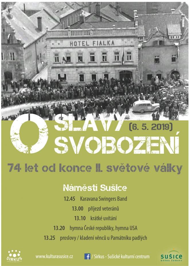 Květnové oslavy osvobození, spojené s přehlídkou dobové vojenské techniky, zbraní a vozidel, proběhnou dnes na sušickém náměstí a u památníku padlým v parku pod ZŠ TGM.