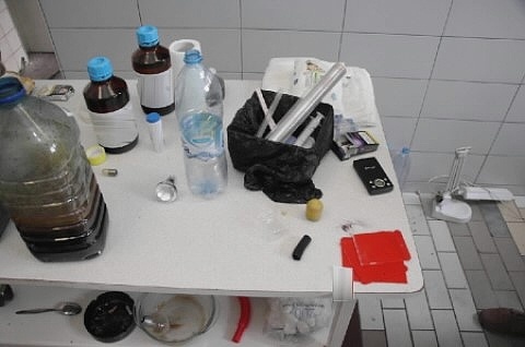 Policisté poté provedli domovní prohlídku, při které zajistili chemické látky, předměty k výrobě pervitinu a látku s obsahem efedrinu. Proces výroby pervitinu nebyl dokončen na základě provedeného zákroku generálního ředitelství cel a protidrogového oddělení.