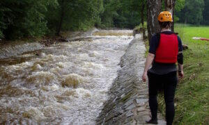 Jihočeská říčka Volyňka u Sudslavic po čtvrteční velmi silné bouřce s přívalovými dešti dosáhla zhruba hodinu před půlnocí třetího povodňového stupně, později klesla na
