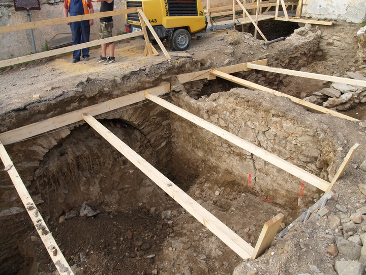 „V současné době provádíme dokumentování situace na nádvoří Horního zámku, kde jsme se zaměřili na relikty raně gotického paláce pánů z Janovic ze 13. století,“ prozradil vedoucí oddělení archeologie NPÚ v Českých Budějovicích Mgr. Jiří Havlice. Dalším dokumentovaným nálezem se stala příčná gotická hradba s částečně dochovaným portálem. „Před vstupní Hodinovou věží se podařilo kompletně odkrýt větší část zaniklého renesančního mostu z počátku 17. století, který vedl přes hradní příkop,“ prozrazuje Jiří Havlice.