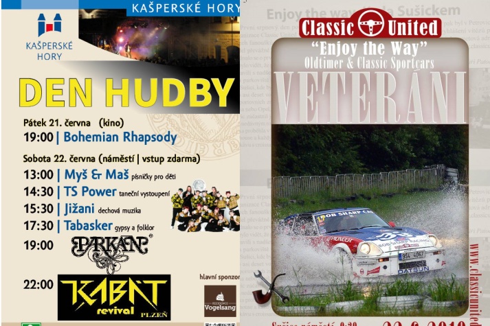Přehlídka veteránů na sušickém náměstí, Den Hudby na Kašperských Horách, pouť v Mlázovech… to je jen několik tipů na příjemně strávený víkendový čas.
