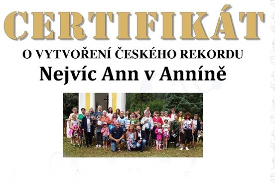 O uplynulém víkendu se rámci IV. Annenské sklářské pouti v Anníně sčítaly přítomné Anny, Aničky, Andušky…. Rekordní počet nositelek krásného jména ANNA, které se sešly na jednom místě v jeden den, byl oficiálně uznán a zapsán…