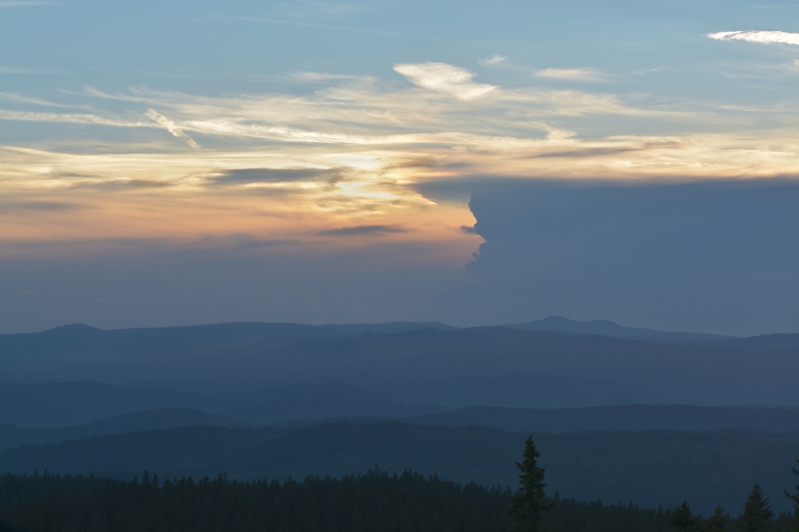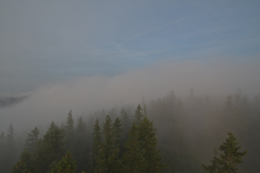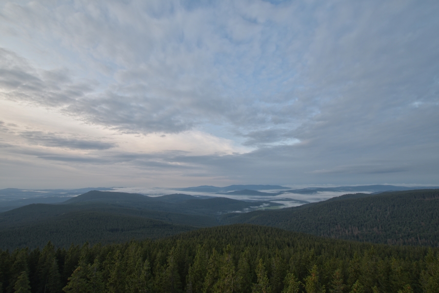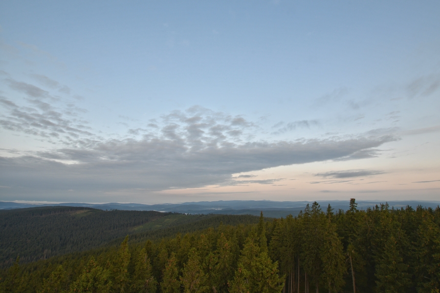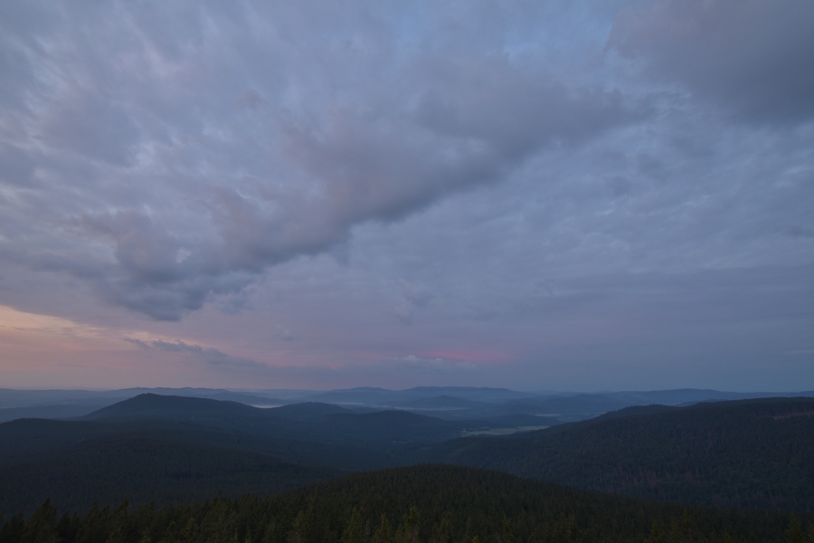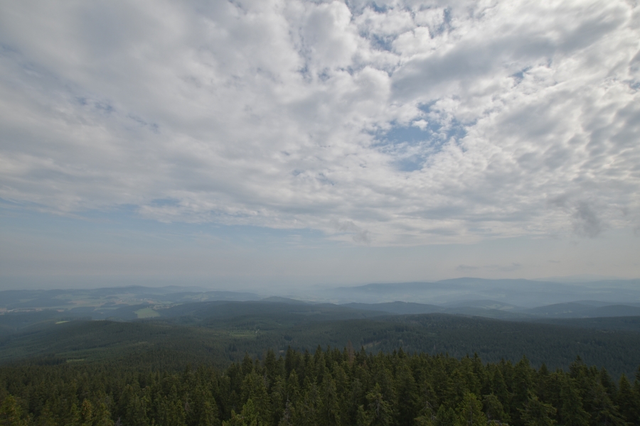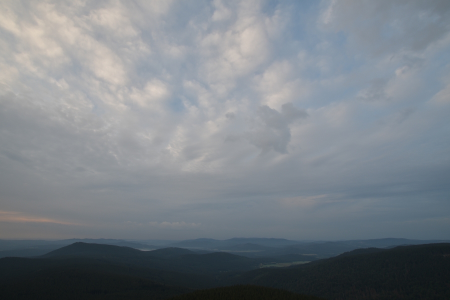 Časně zrána se opět potvrdilo, že nejednou býváme vystaveni klamavým oblačným úkazům. Pohledem z Třístoličníku, resp. Hochsteinu se napravo od Bobíku (připomeňme si, že naše šumavské bratry odtud vidíme v obráceném pořadí nežli třeba z Libína – tedy jako první zleva Boubín a dále vpravo Bobík) zdá rozpínat bouřková kovadlina. Radar nicméně hlásil, že v rámci celé Evropy se nejbližší bouřkové aktivity vyskytují v severní Itálii.