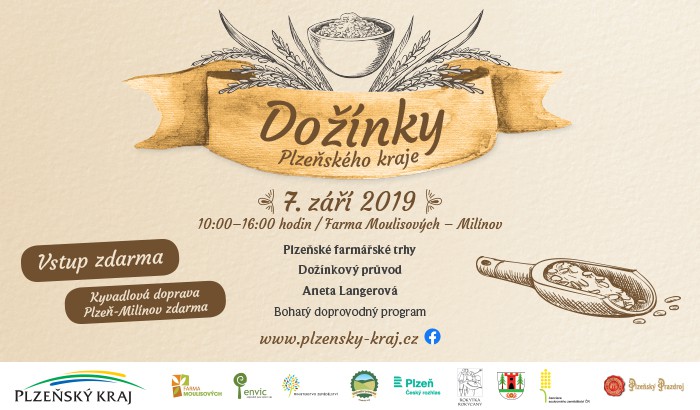 Tradiční oslavy ukončení sklizně a poděkování za úrodu pořádá Plzeňský kraj již po deváté, tentokrát v sobotu 7. září 2019 od 10 hodin na Farmě Moulisových v Milínově na jižním Plzeňsku.