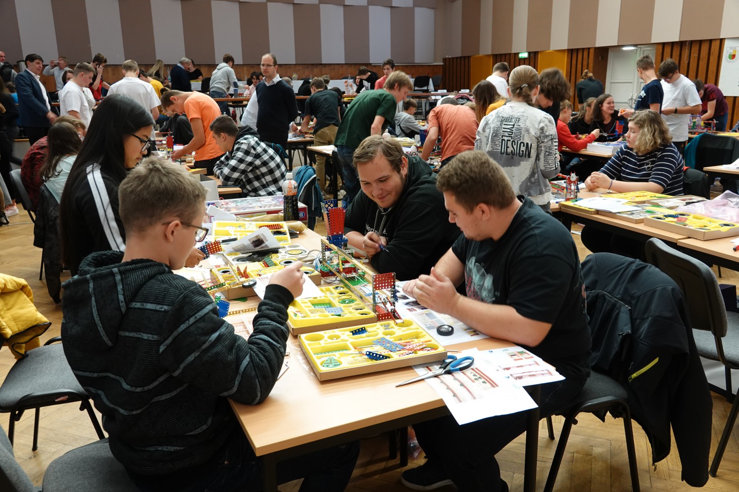 Žáci také letos pracovali se stavebnicemi Merkur a Boffin. Úkolem soutěžních družstev bylo sestavení třídící linky pro ping pongové míčky na elektrický pohon s elektronickou regulací. Na toto náročné zadání měli účastníci časový limit 4 hodiny a k dispozici jim byli tři odborní poradci a osmičlenný pomocný tým složený z pedagogů a žáků SOU elektrotechnického Plzeň.
