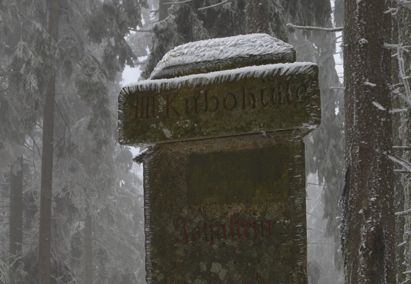 Ani poslední listopadové neděle není Vimperku souzeno osvobodit se z mlžného sevření … a snad je tomu tak dobře. Těžko bychom totiž hledali příhodnější kulisu k putování po starošumavských pověstech, resp. místech, kde by se klidně mohly odehrávat – a možná skutečně odehrály. Pro dnešek začněme postavou Černého lovce. Ano, sáhli jsme hned po „těžkém kalibru“, neboť pod tímto označením se v představách našich dávných předků skrýval sám ďábel. Každá mohutnější šumavská bouře byla jeho pekelnou honbou, z níž nebylo možno vyváznout životem nikomu, kdo se netěšil zvláštní ochraně sil nebeských. Však si připomeňme třeba slavnou operu Čarostřelec od Carla Marii von Webera, pozoruhodnou tím, že obsahově byla inspirována Šumavou a na té se také odehrává (podrobněji jsme se jí tu ostatně věnovali již před osmi lety – konkrétně 5. listopadu 2011 cestou na Velký Ostrý – viz http://vimperk.eu/index.php/vimperk/3309). Dnes nemusíme vážit kroky ani do dalekého Královského hvozdu, neboť tajemnou temnou jeskyni, …