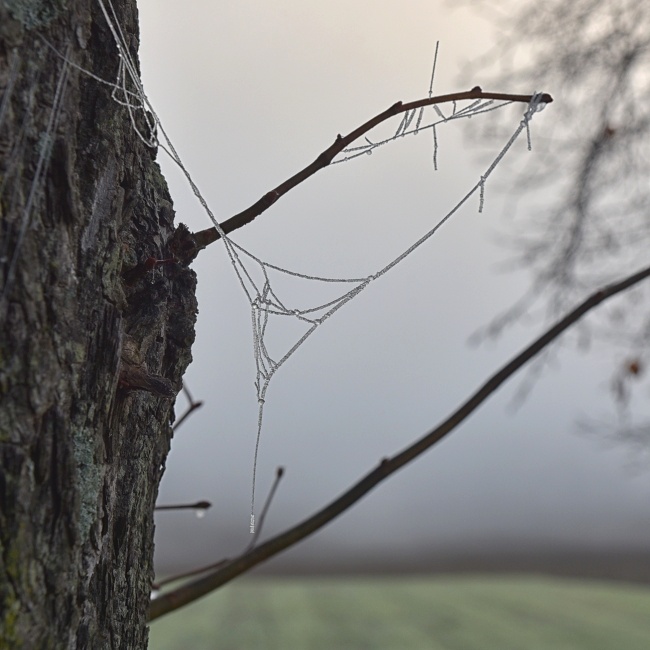 Výchozí lokalita však o dvě hodiny později zchudla všehovšudy o ranní námrazu, zatímco mlha v údolí naopak nabyla mnohem kompaktnější podoby. Dnešek jí zkrátka zjevně bude náležet.
