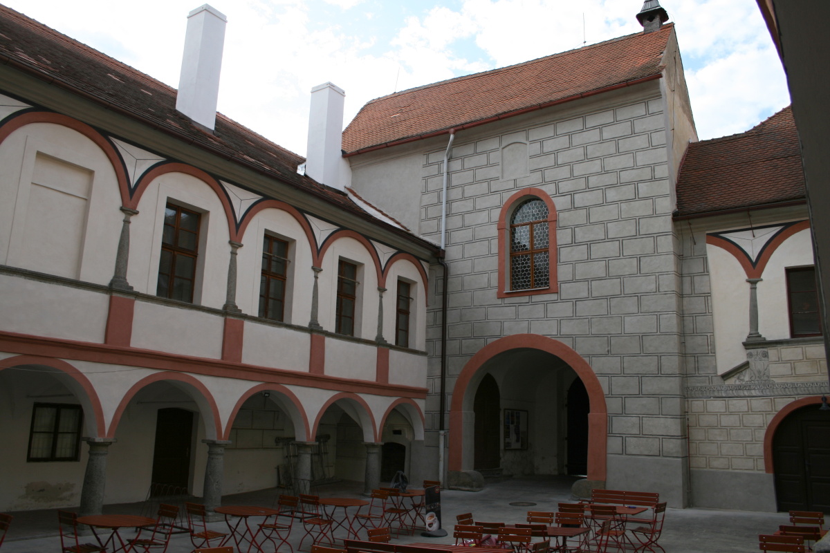 po provedení restaurování sgrafit a nástěnných maleb arkádového nádvoří zámku