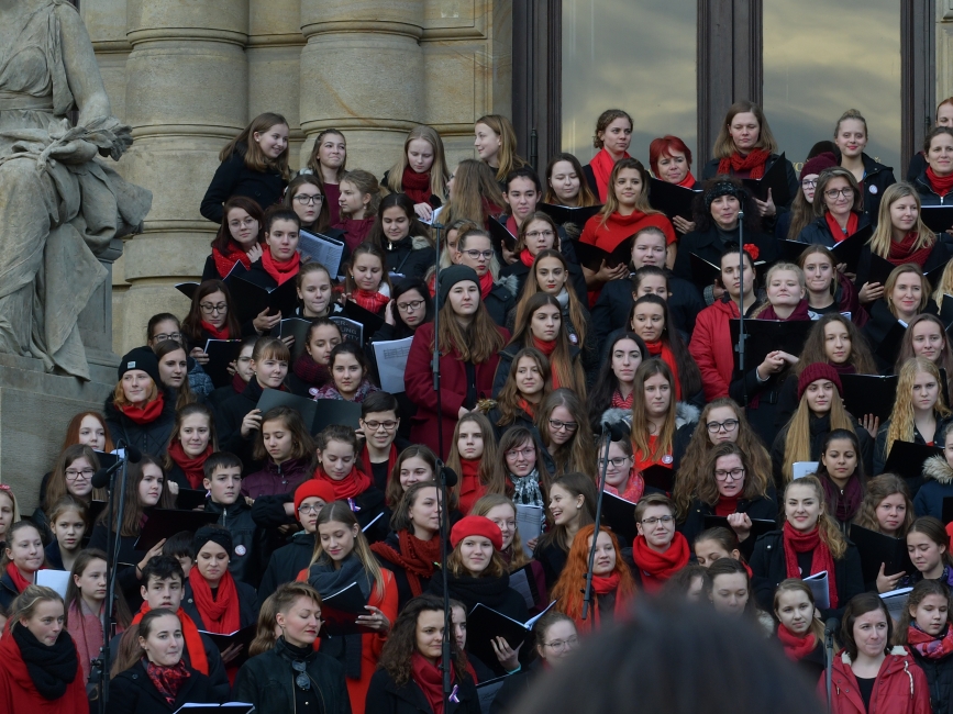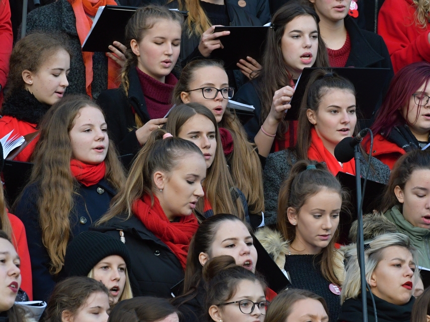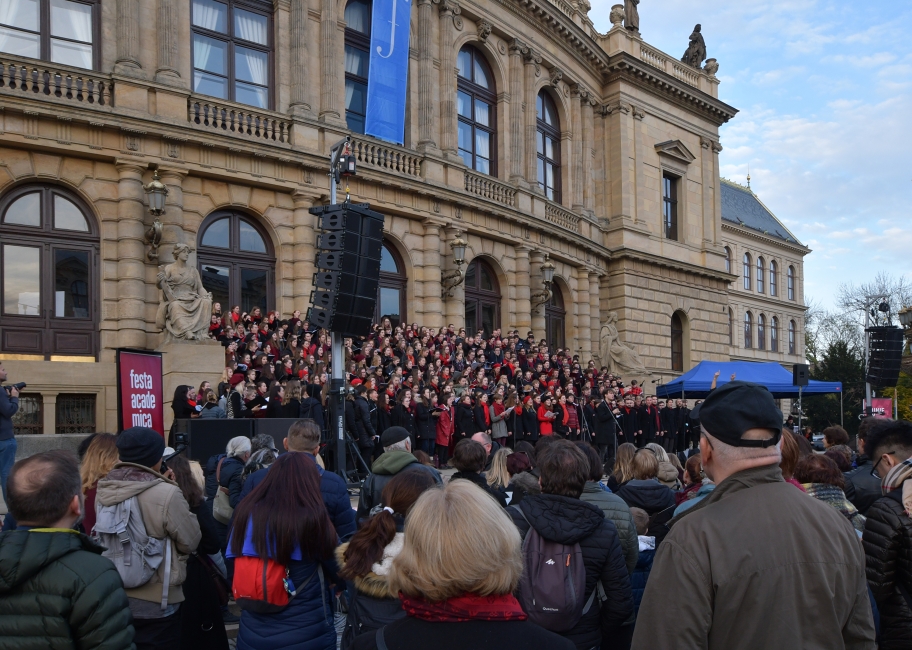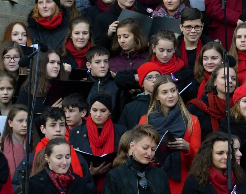 V neděli 17. listopadu se úderem patnácté hodiny před zcela zaplněným náměstím Jana Palacha shromáždilo na hlavním schodišti památného Rudolfina mohutné těleso čítající více než čtyři sta zpěváků, kteří se tu spojili z celkem patnácti středoškolských pěveckých sborů (vedle čtyř pražských se dále i se svými sbormistry co řadovými zpívajícími členy postavily sbory z Jihlavy, Jindřichova Hradce, Neratovic, Orlové, Ostravy, Poděbrad, Strakonic, Valašského Meziříčí, Vimperka, Vsetína a Žamberka). Spolu s nimi se chopila svých nástrojů doprovodná rocková kapela LS. Dirigentské role se podobně jako loni ve Dvořákově síni ujal Libor Sládek, špičkový sbormistr, v jehož osobě se snoubí spontánní zapálené muzikantství s nejvyššími profesionálními nároky. Od takové spolupráce lze očekávat ve výsledku jedině hluboké umělecké zážitky. Nadšeně aplaudující náměstí (podobně jako před dvěma lety Národní třída zaplněné nemalou měrou rodiči a příbuznými mladých zpěváků) po každé části oratoria jednoznačně dokazovalo, že se jich skutečně dočkalo. Neméně intenzivní zážitky si však odnášely či z Prahy odvážely také účinkující sbory včetně vimperského Canta. A k tomu všemu nelze opomenout, že se skvělou atmosférou celého koncertu úžasně souznělo též překvapivě teplé a slunečné počasí, v jaké by ještě v průběhu právě končícího týdne patrně nikdo nedoufal.