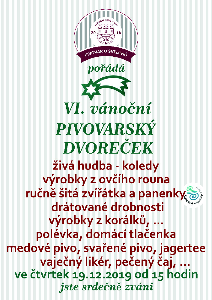 Ještě jste nebyli na vánočním pivovarském dvorečku? V tom případě je nejvyšší čas! Na sušickém Pivovarském vánočním dvorečku je pro vás připraveno nejen výborné pivo z místního pivovaru, ale ještě celá řada vánočních laskomin nejen jedlých…