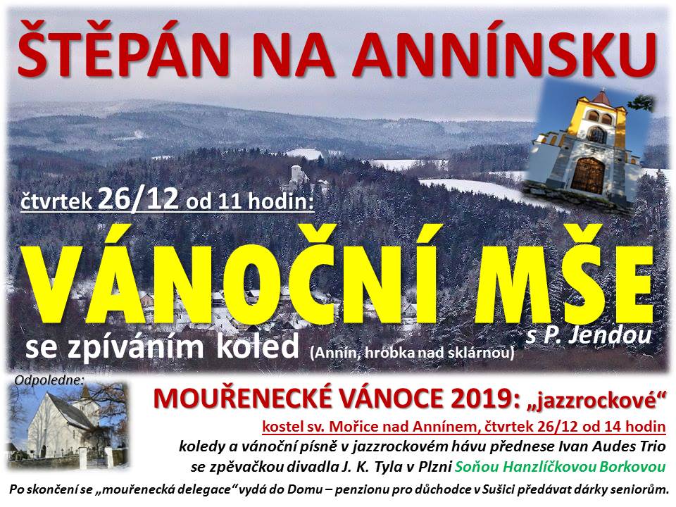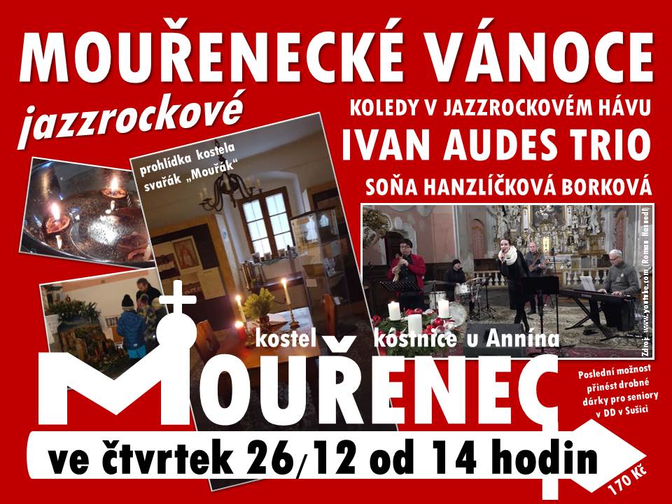 Na Štěpána ve 14 hodin začínají Mouřenecké Vánoce, při kterých zazní tradiční koledy a vánoční písně v netradičním jazzrockovém hávu v podání Ivan Audes Tria a zpěvačky plzeňského Tylova divadla Soni Hanzlíčkové Borkové.