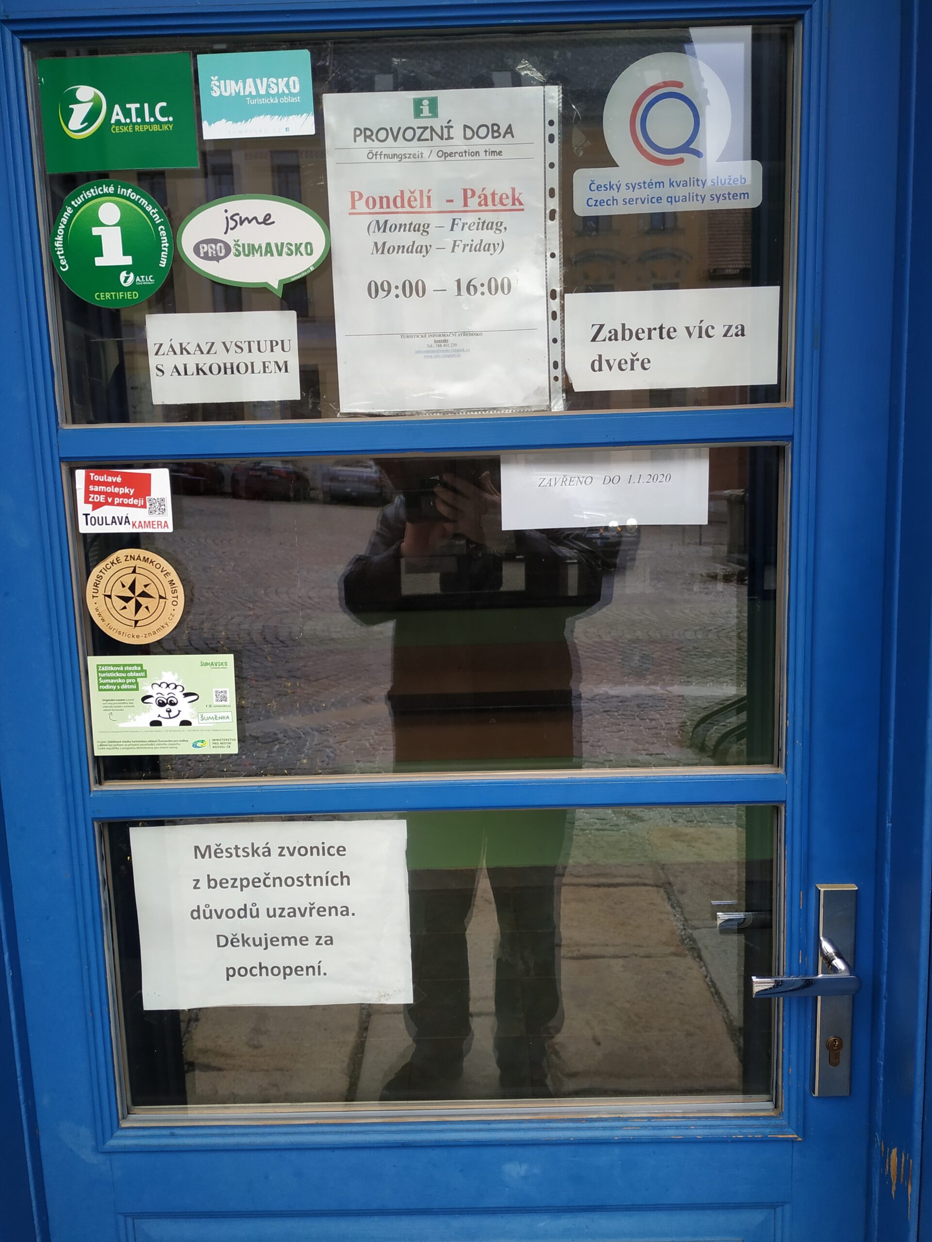 TIS je úplně zavřené a odbor kultury marně shání, jak vedoucího střediska, tak i referenta k tomu, aby mohl TIS vůbec otevřít! Ze vstupních dveří TIS, které spíš připomínají vstup do cirkusové maringotky je patrné, že provozní doba TIS je od pondělí do pátku, a to od 9,00 do 16,00 hod. (pozn. pro objektivitu přikládám i foto ze dne 28.12.2019).