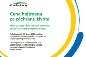 Na Cenu hejtmana Plzeňského kraje za záchranu života 2019 lze posílat nominace Každoročně vyhlašuje Plzeňský kraj Cenu hejtmana za záchranu života. Obyvatelé Plzeňského