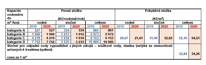 Zatímco ceny u pevné složky se nezměnily, ceny u pohyblivé složky (vodné, stočné) mírně stouply.