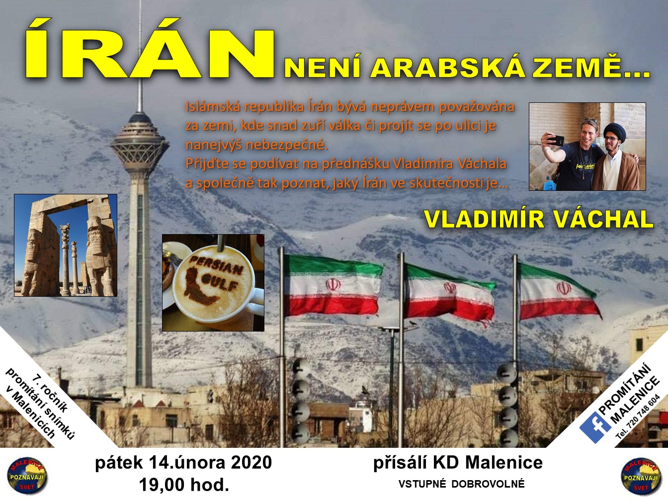 Vláďa Váchal je zkušený průvodce, který pravidelně navštěvuje tuto zemi, plynule se dorozumí persky a dokonce z perštiny i tlumočí… V této přednášce přiblíží spoustu zajímavých věcí z politického i kulturního dění ze země, které se možná neprávem obáváme a je často v médiích ukazována v úplně jiném světle. Přátelští lidé a pohostinnost je jedním z mnoha pozitiv Íránu…