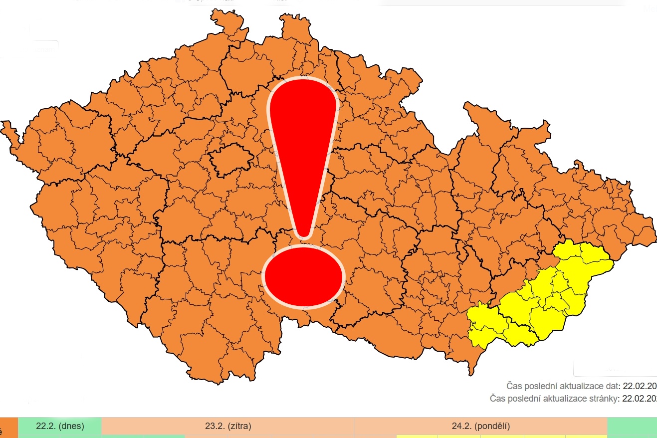 Český hydrometeorologický ústav vydal další výstrahu před velmi silným větrem, a to na oba následující dny, neděli 23.2. a pondělí 24.2.