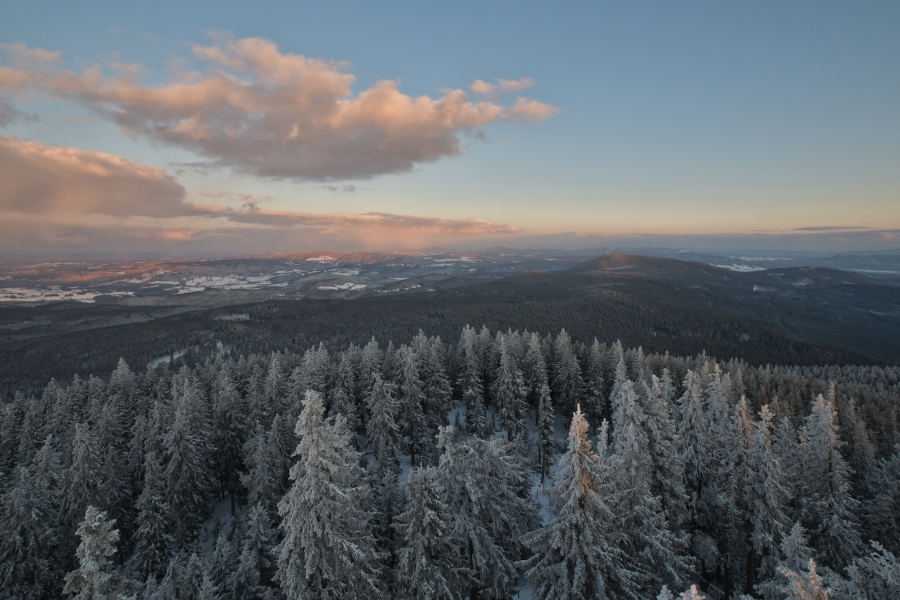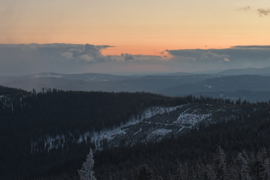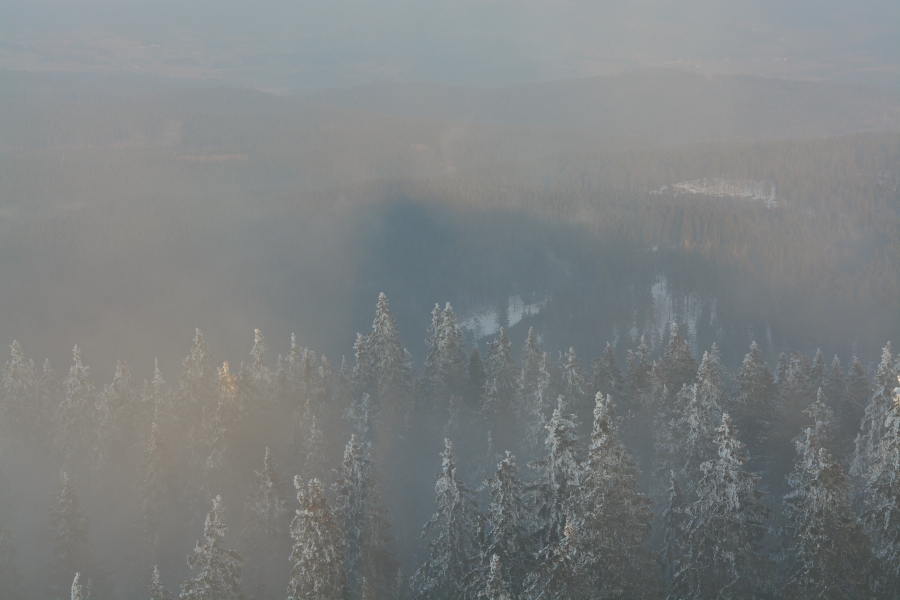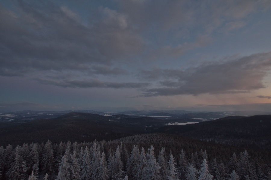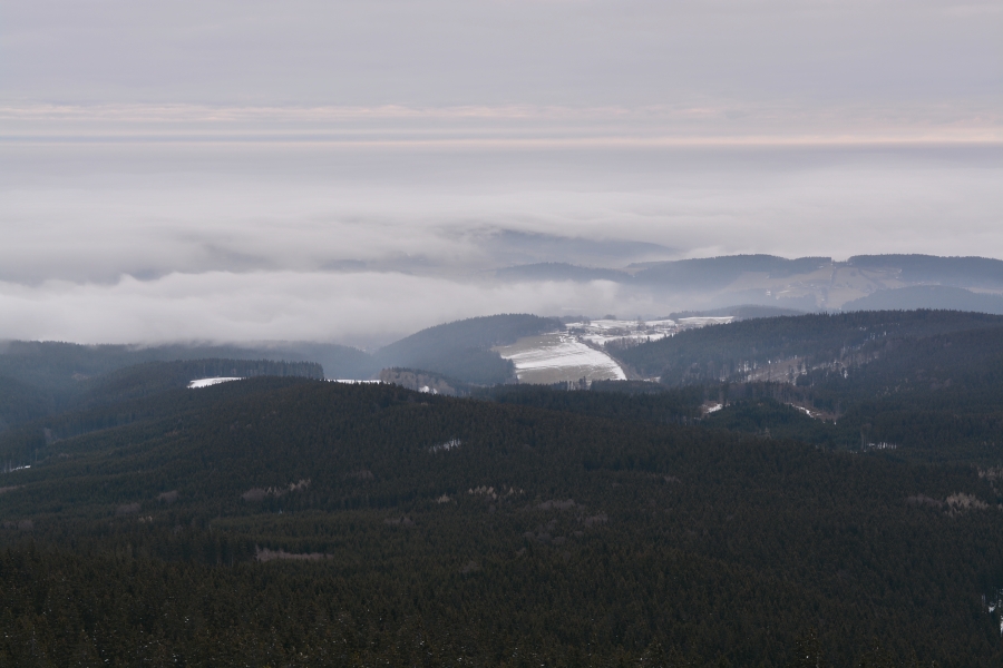 Za takové situace by se bývala dala předpokládat mimořádná dohlednost – např. v Brdech byla v průběhu dne zaznamenána. Šumava to štěstí neměla, …