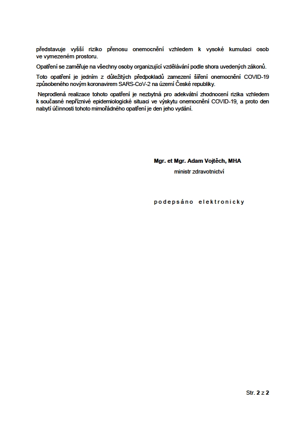 Od středy 11. 3. 2020 platí rovněž uzavření základních, středních, vyšších odborných škol i vysokých škol.