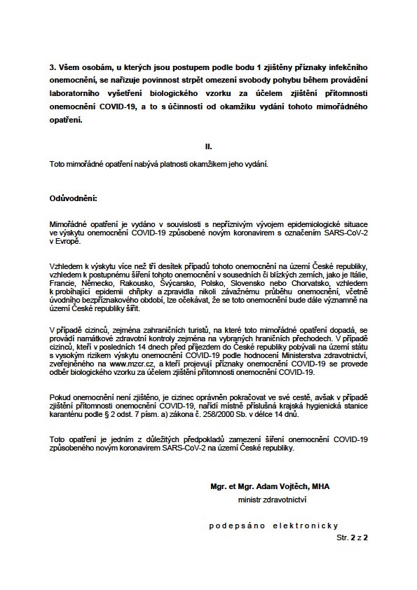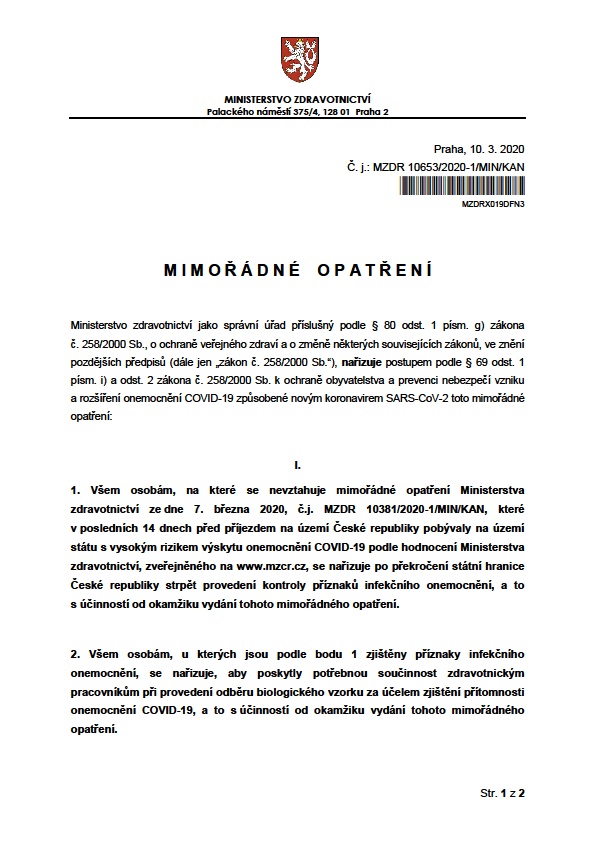 Zákaz platí od úterý 10. 3. 2020 od 18.00 hodin do odvolání.