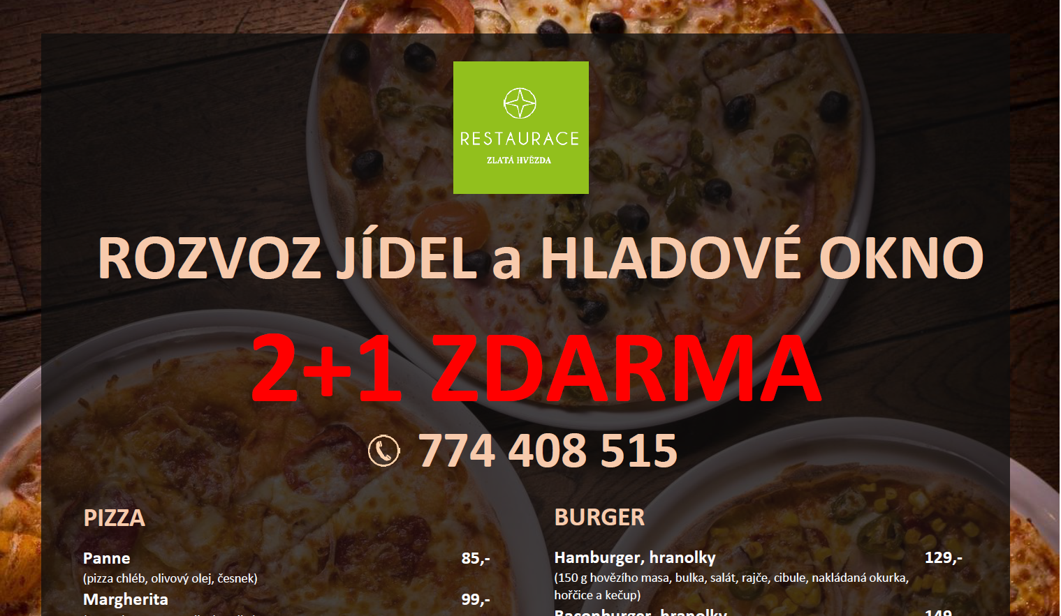 Na základě přijatého opatření vlády ze dne 15. 3. 2020 – KARANTÉNA ČR, se snažíme i nadále v souladu s předpisy a zákony udržet naši službu poskytování jídla s sebou. Rozvoz a hladové okno zachováme jako službu našim spoluobčanům.