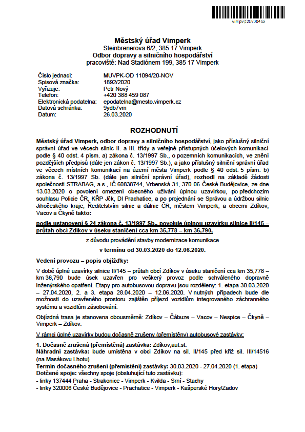 Stanovení přechodné úpravy provozu na pozemní komunikaci