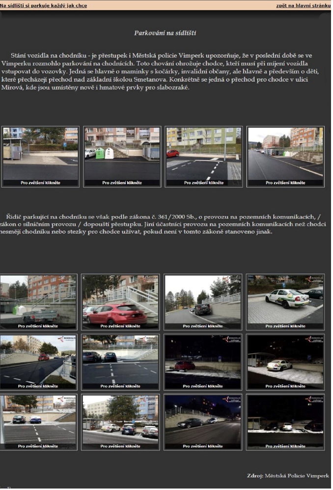 Ale k doložení, jak funguje synchronicita! Ještě ten večer (19.4.2020) se mi ozvala do té doby mě úplně neznámá žena, vyjádřila mi podporu a poslala mi odkaz na článek uveřejněný dne 1.7.2019 na portále vimperk.eu, pod názvem. „Na sídlišti si každý parkuje, jak chce“, kde je jako zdroj uvedená Městská policie Vimperk a je zde uveřejněno také 12 ilustračních fotek pana Zdeňka Formánka společně s logem ŠUMAVA.EU uzdravuje. Námět fotek je zcela patrný.