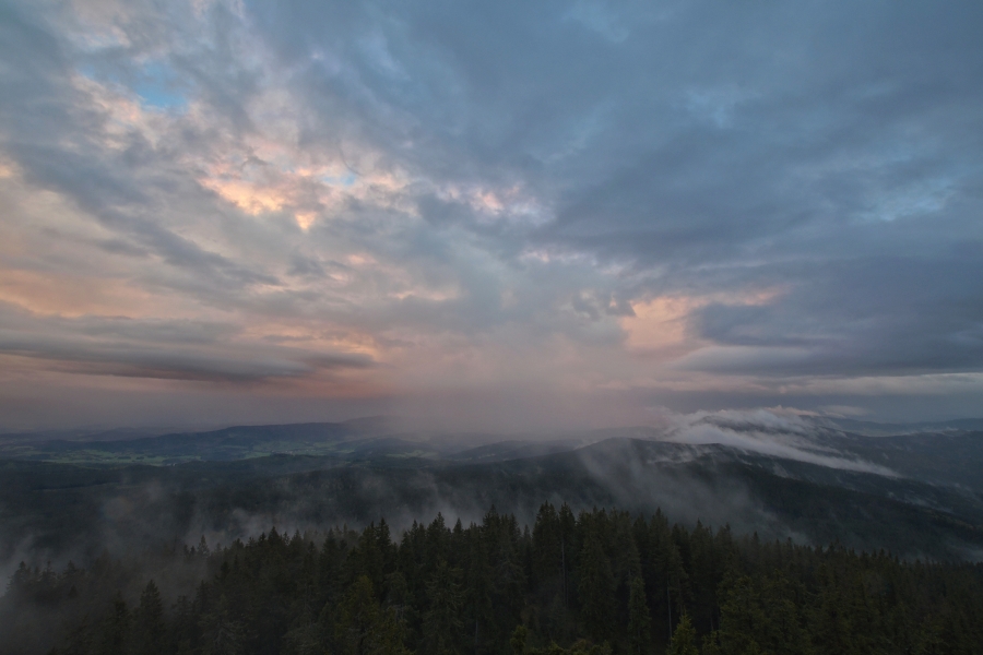 Včerejší boubínský odhad, že by mohlo vydatně zapršet, se začal naplňovat již časně zrána a teprve před jedenáctou hodinou naznačila oblačnost nad Vimperkem příští změnu.