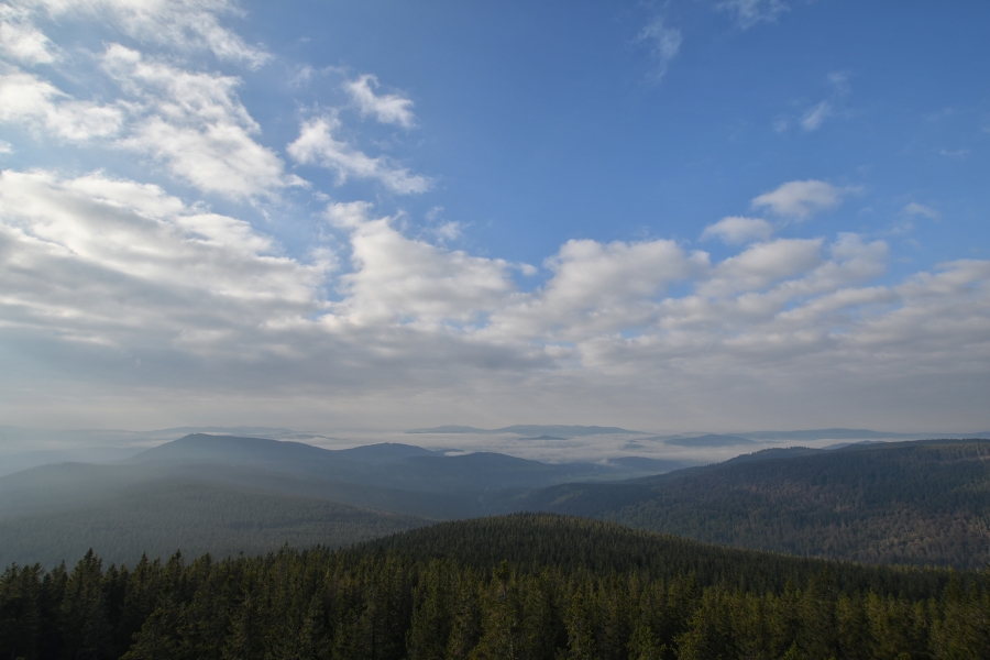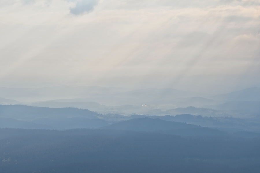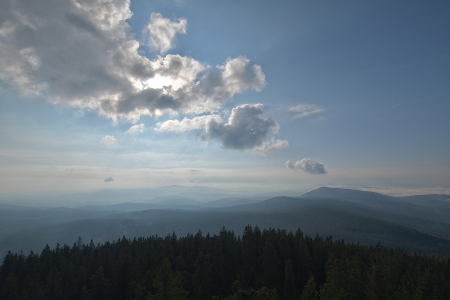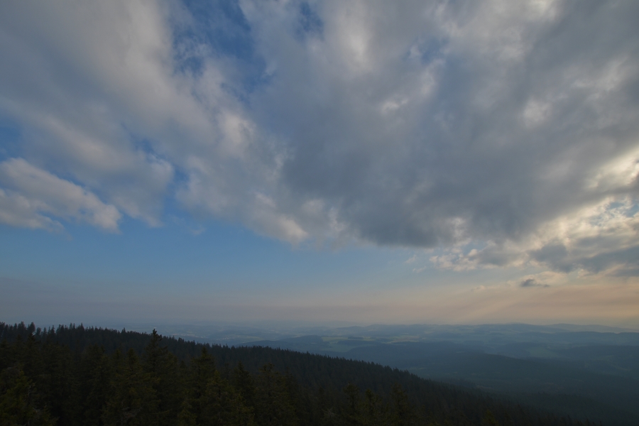 Na dohlednost si ostatně nebylo možno naříkat, večerní osvětlení na západním horizontu ideálně vytáhlo nejen běžně viditelné vrcholy jako Jezerní horu či oba Ostré, ale též třeba Špičák, který většinou před posledně jmenovanými bratry zaniká.