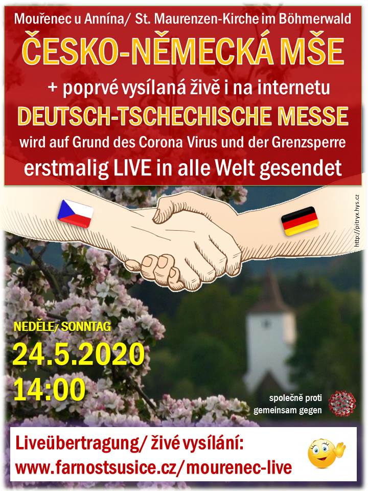 Mše začne v neděli ve 14 hodin. Sloužit ji bude P. Jenda Kulhánek. Ve stejný čas začne na adrese: www.farnostsusice.cz/mourenec-live živý přenos.