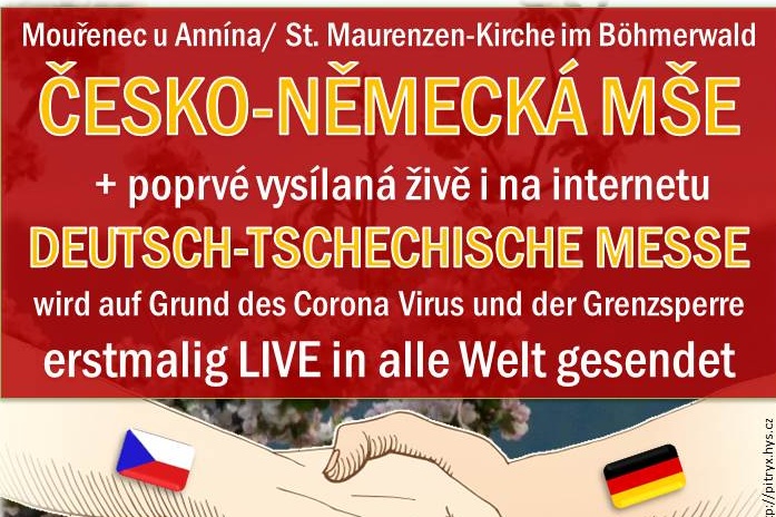 Další premiéru má před sebou šumavský kostel na Mouřenci u Annína. V neděli 24. května 2020 bude v kostele tradiční jarní česko-německá mše. Kvůli epidemii koronaviru a uzavřeným hranicím bude ale výjimečně bez německých poutníků. Ti, ale i další zájemci, můžou mši poprvé v 800leté historii tohoto kostela sledovat živě na internetu.