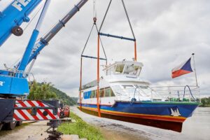 Transport lodi Smetana na Lipno Osobní loď s vyhlídkovou palubou, která se jmenuje Smetana se převážela