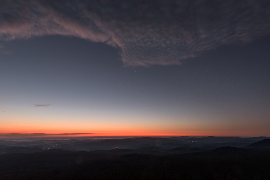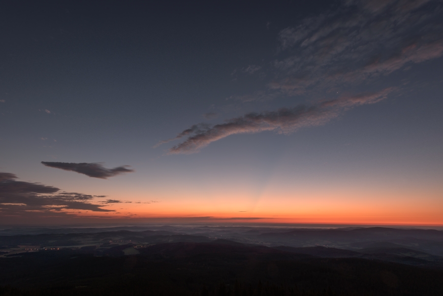 Do oblačnosti západní oblohy pak vepsalo krom tradičního probarvení také postřehnutelný svazek antikrepuskulárních paprsků.
