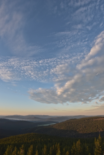 Těch několik obláčků do večera zmizí – den se rozloučí zcela vymetenou oblohou, připravenou na zítřejší parno.