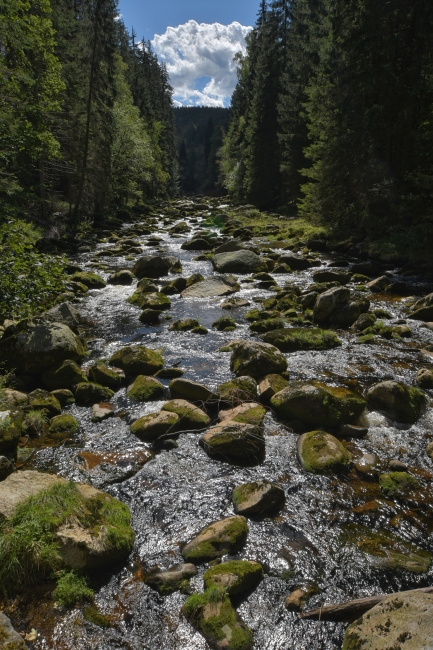 … a nikdo se určitě nehněval na předposlední letní měsíc za to, že se rozloučil sice nikoli zrovna letním parnem, ale v každém případě převažujícím sluníčkem, byť nesálajícím z bezmračného blankytu. Komu pak snad scházela vláha, mohl se za ní vypravit třeba k našim úžasným šumavským vodopádům – tento najdeme na Zhůřském potoce.