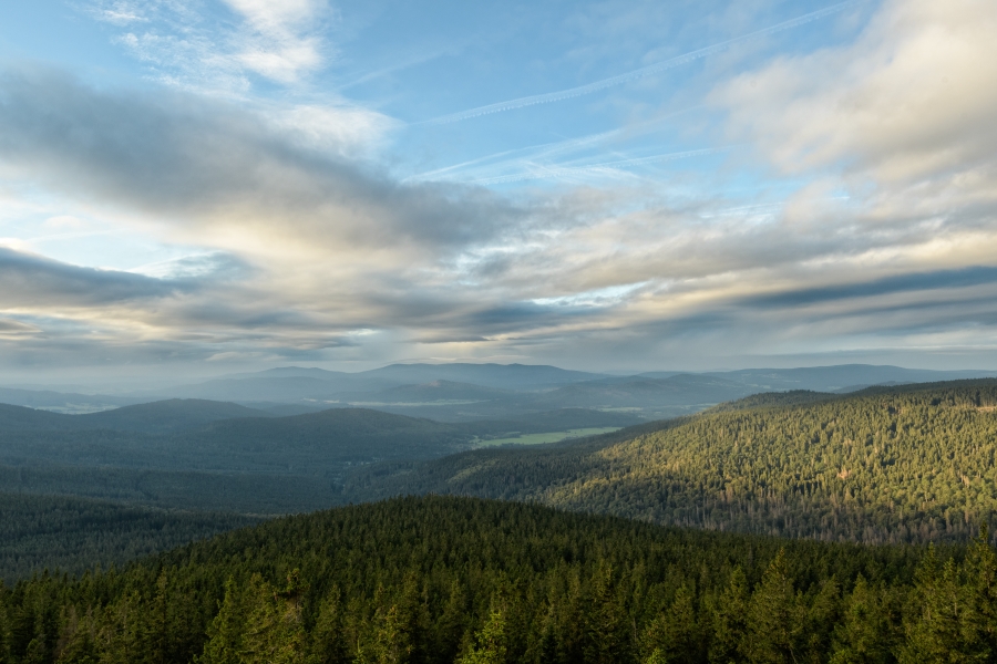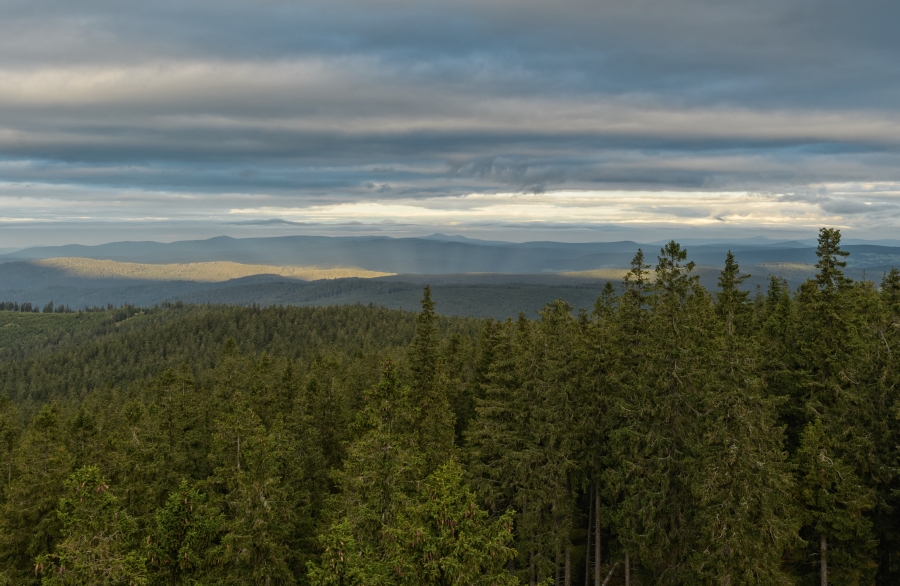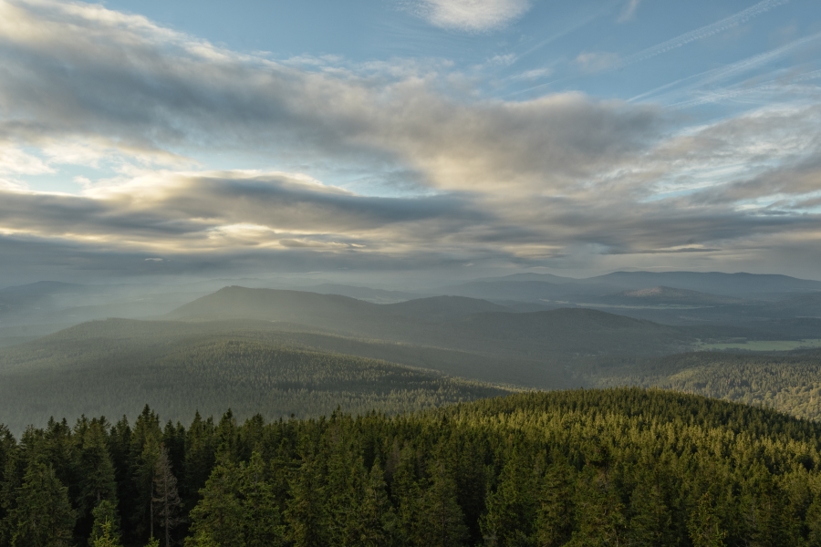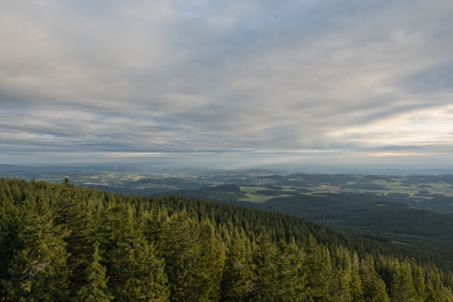 Pod dramatickou pozápadovou oblohou sedly do příhraničních končin první mlhy, které se zítra s nemalou pravděpodobností nad Šumavou za přispění čerstvé oblačnosti propojí v jednu velkou šedobílou clonu.