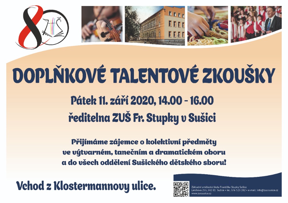 Pro ty, kteří se nemohli či nestihli přihlásit v prvním termínu k talentovým zkouškám  na ZUŠ Sušice, je tu ještě jedna možnost:
