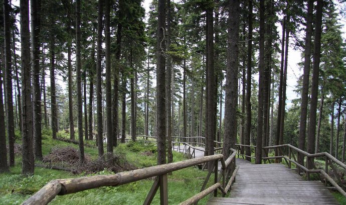 chodit kolem oploceného Boubínského pralesa (47 ha) a v něm VIDĚT STAV ve vrcholné fázi vývoje lesa (tj. přirozená směs dřevin s převahou smrku ve stáří až 500 let) – a NE PROCESY, které tam probíhají (tj. mladý les s převahou buku).