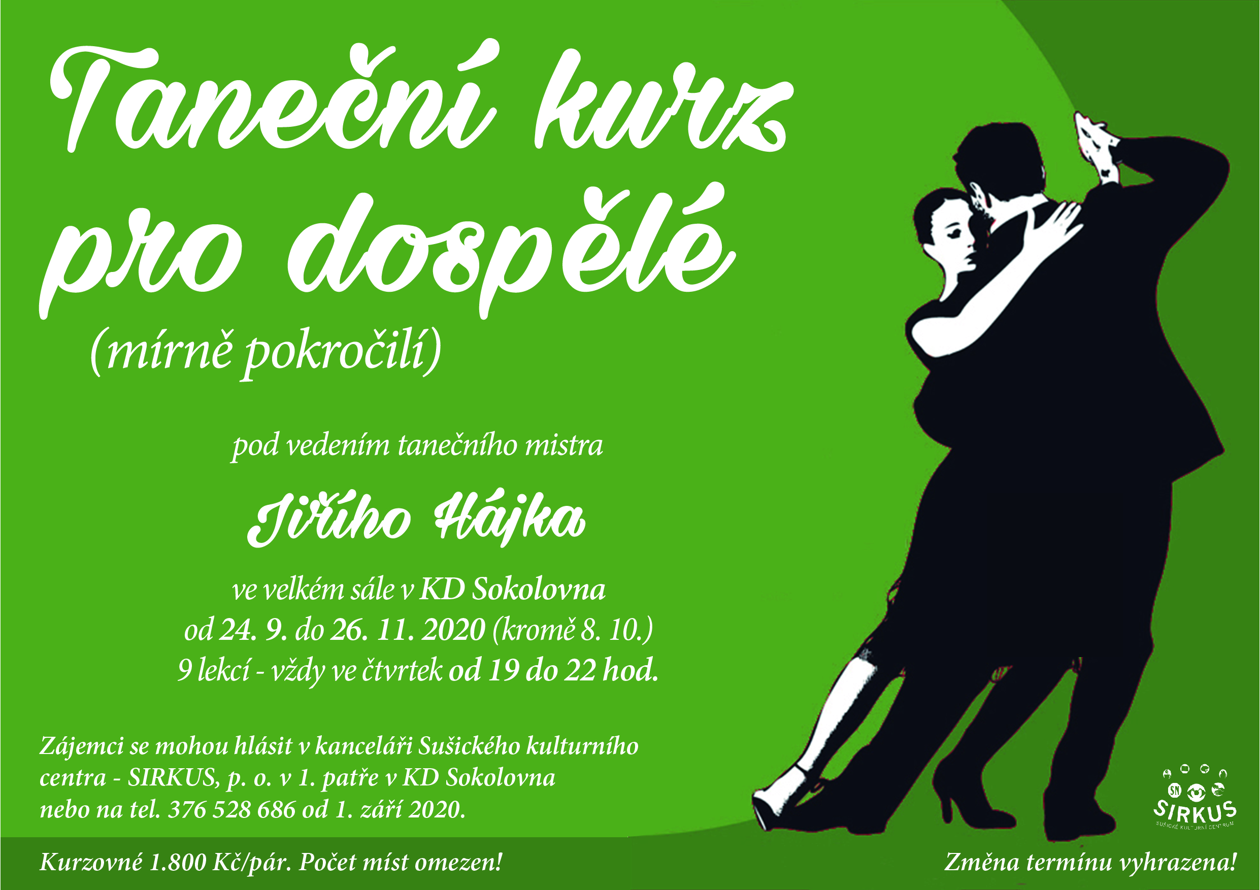 Taneční pro dospělé, ať už více či méně zdatné, má v Sušici tradici, tak si ji pojďme osvěžit i v podzimním kurzu…