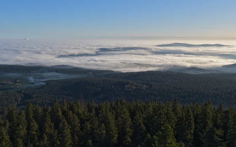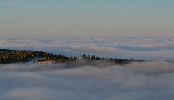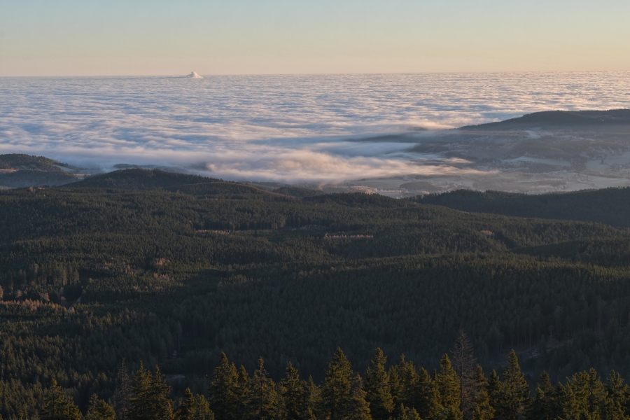 Těžko se divit naléhavé otázce, jak dlouho a nakolik bude vbrzku nad oblačný oceán vyčnívat Mařský vrch (907 m n.m.), momentálně viditelný i s nedalekou Šibeniční horou (872 m n.m.), pod níž se přímo rozkládá aktuálně zmizelá obec Svatá Maří.