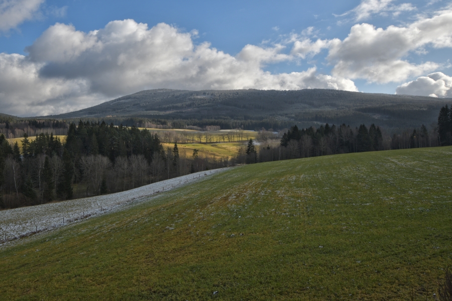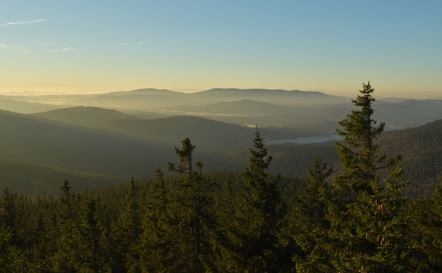 … až k protilehlé Trojmezenské hornatině, došel i za obklopení radujícím se turistickým davem, chvílemi vzbouzejícím dojem jakési malé předsilvestrovské „generálky“, své fotografické realizace.