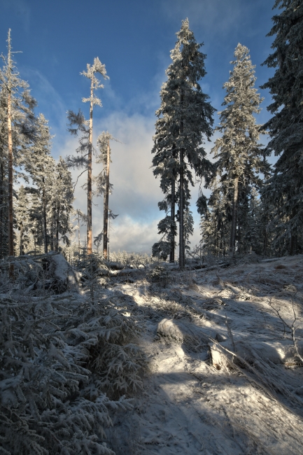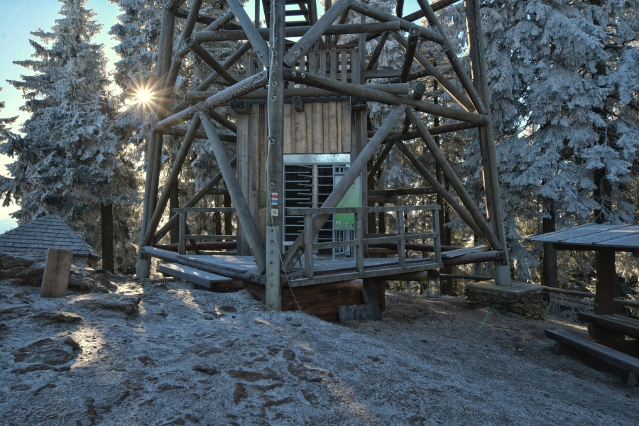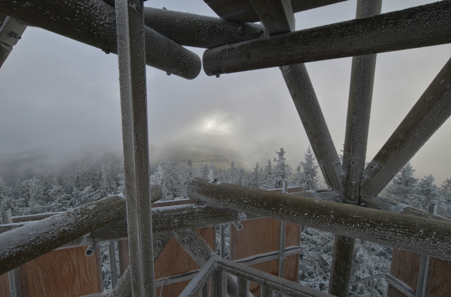 Jihozápadní proudění v občasných závanech dosáhlo maximálně na 2,5 m/s (9 km/h), mrazík se oproti včerejšímu o necelý stupeň zmírnil, avšak stihl úspěšně pokrýt konstrukci rozhledny svou charakteristickou výzdobou, …