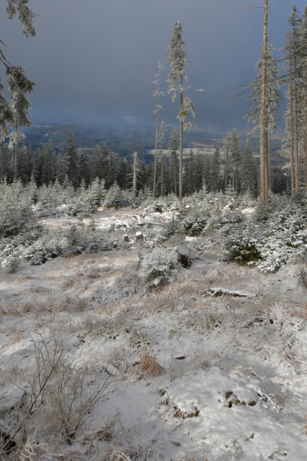 Zatímco Vimperk se pod celodenní zataženou oblohou držel v řádu desetin plusové strany poblíže nuly, nahoře slušně přituhlo …