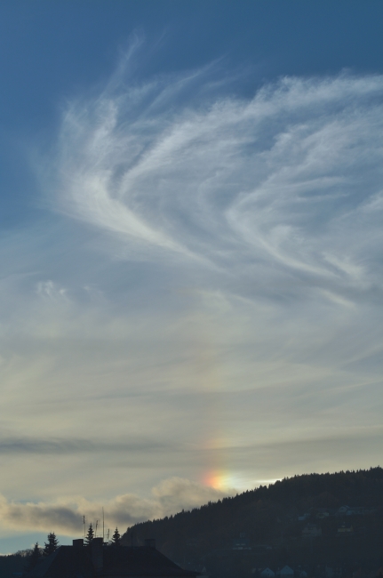 Jak zde bylo zmíněno již 15. listopadu, příznivé atmosférické podmínky pro vznik onoho úchvatného jevu současně ruku v ruce nahrávají modrým a zeleným (nejednou i z obou barev vzájemně kombinovaným) zábleskům nad vycházejícím Sluncem. Bylo je tedy možno s naprostou jistotou očekávat i dnes …