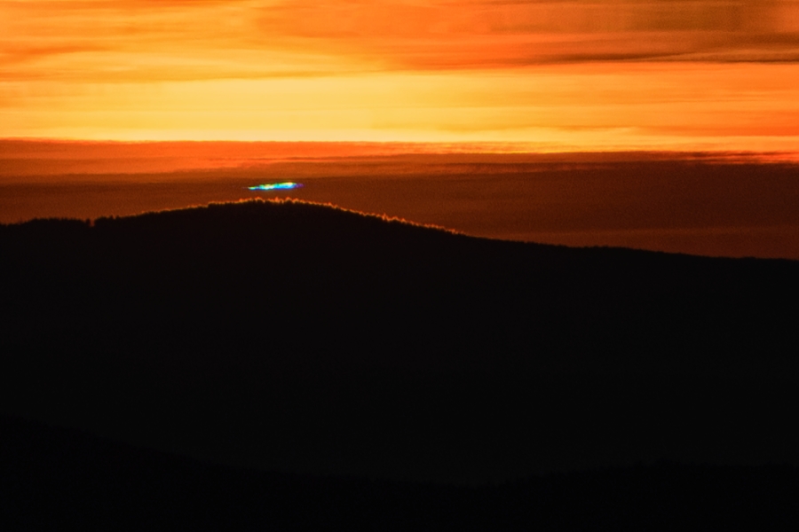 Lov případných ani dnes nevyloučitelných zelených záblesků tentokrát z výše úvodem popsaných příčin pozbyl možnosti smysluplné realizace, ale úchvatný sluneční pozdrav volně dýchajícím vrcholům, počínaje Novohradskými horami na východním obzoru, …