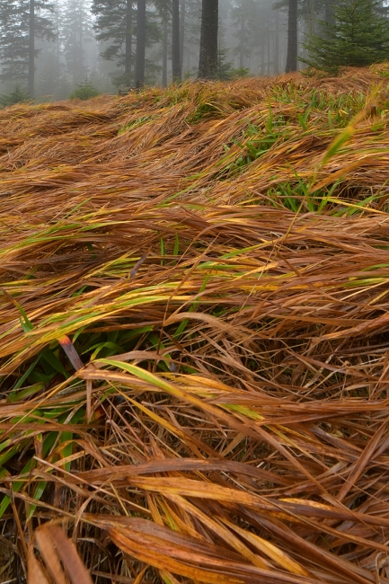 … ale právě tím, navíc za přispění doslova na poslední chvíli před slunečním západem na boubínský vrchol přispěchavší mlhy, působivější.