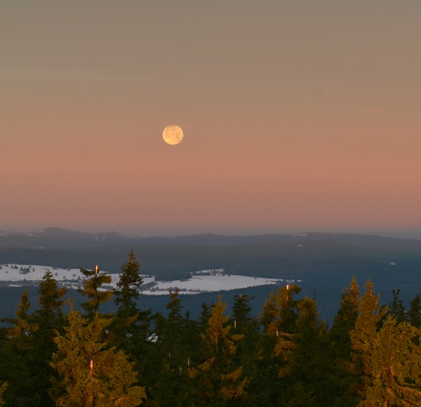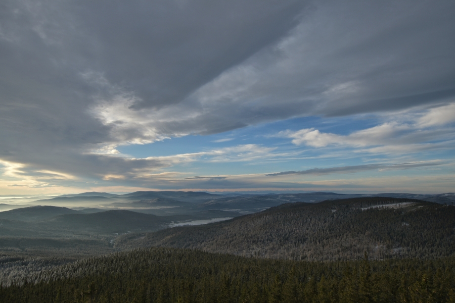 Jediná noc postačila k tomu, aby se městu i hoře dostalo – v obou případech, pravda, jen vysloveně symbolicky, čeho bylo včera postrádáno, totiž čerstvého sněhu. Jemný poprašek sice přidal dosavadní vrstvě sotva centimetr, ale skutečnost, že napadl, opět zamíchala celkovým vývojem počasí. Jako vždy bylo nejideálnější pohlédnout na vše z boubínských výšin …