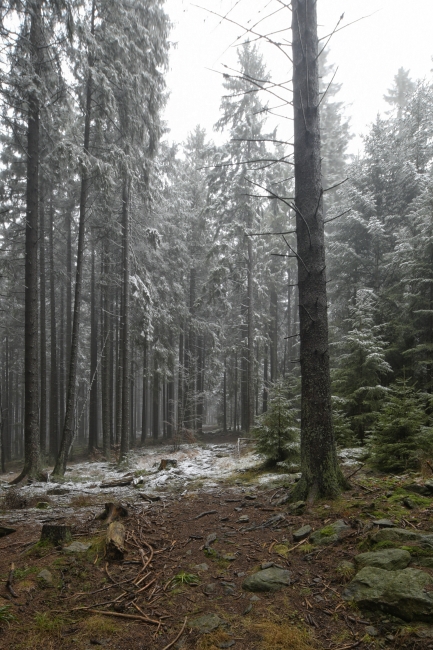 Oteplení, jaké přišlo těsně před letošními Vánoci, lze zvát z hlediska ročního období jedině nepřirozeným, neboť hodnota +11°C po páté hodině ranní posledního dne před Štědrým dnem skutečně nepatří k typickým prosincovým. Ve Vimperku však přesně v ten čas panovala, provázena občasným drobným mrholením. Dalo se tedy očekávat, že na Boubíně nejspíš nedojde oproti včerejšku k výraznější změně.