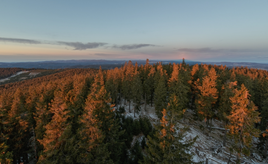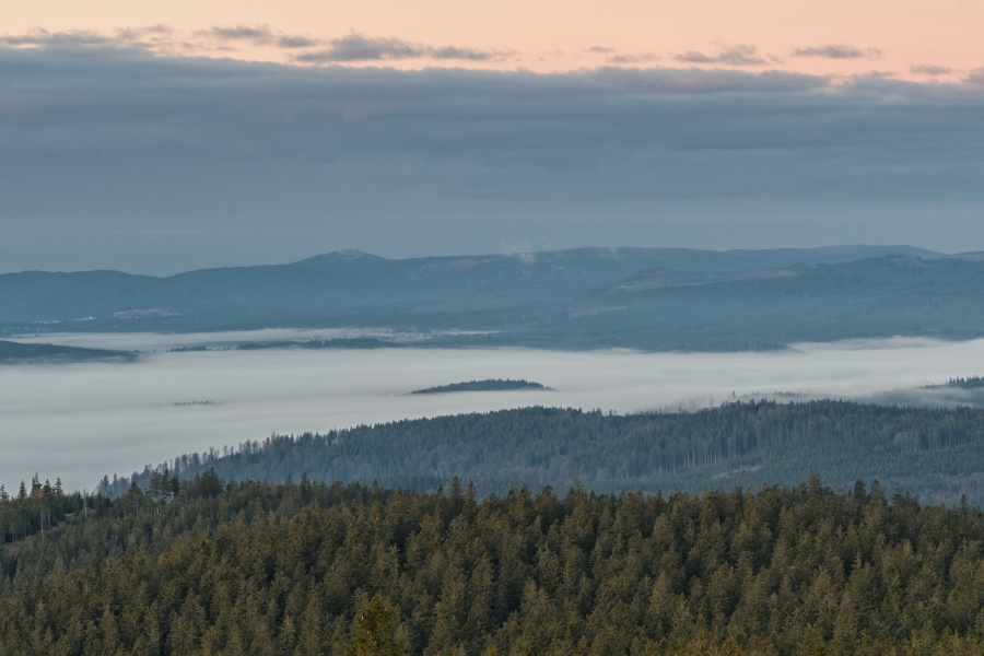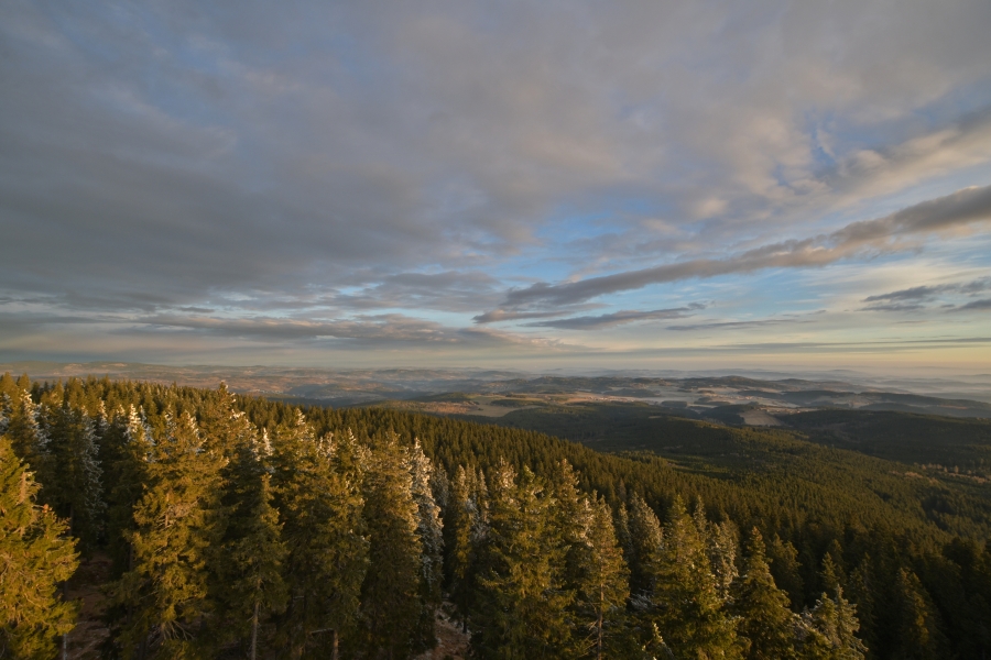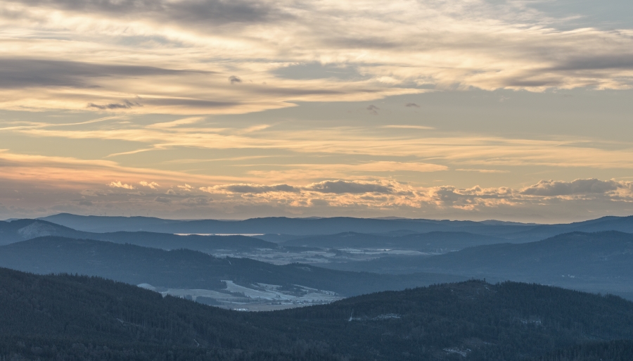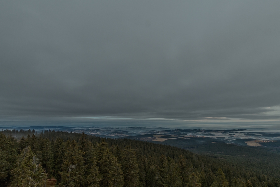 Procitá den zimního slunovratu, v 11:03 vstoupí sluníčko do znamení Kozoroha a tím okamžikem uvítáme astronomickou zimu. Pohled z Boubína posledního podzimního jitra roku 2020 (či jednadvacátého jitra meteorologické zimy – jak je komu libo) skutečně potvrdil včerejší očekávání, že počasí opět rázně pootočí kormidlem. Studená fronta během noci přinesla mírný deštík a dlužno dodat, že tentokrát už byl na ranních silnicích znát, byť se teplota držela nad nulou – ve Vimperku i cestou na Kubovku konkrétně necelými třemi stupni.