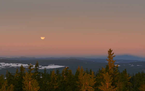 Ani v samém závěru dvacítkového roku jednadvacátého století nescházel poměrně úspěšný pokus Boubína o nasazení mlžné čepice. Naštěstí se však skrze ni dokázal nejednou shora probít čerstvě ubývající, korónou obklopený Měsíc a zespoda současně zasvítil Vimperk, …